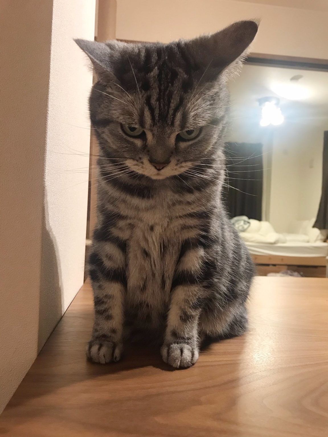 ▼這隻貓咪睡不好時眼神惡狠狠的,脾氣非常差。其實牠平時很親人,很愛撒嬌,尤其喜歡被摸摸。只要推主摸摸牠的下巴、頭,牠就會露出幸福到不行的超爽表情,讓人心都要融化了。
