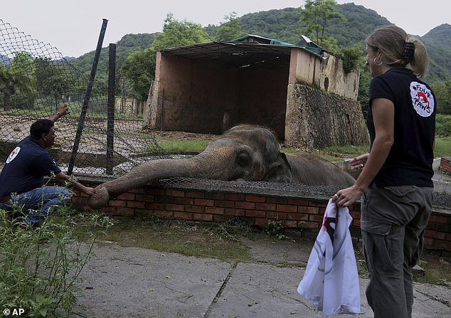 ▼後來動物園找來一隻叫Saheli的母象跟Kaavan作伴,Kaavan的情緒果然變好很多,不久後Saheli又生病離開了世界。失去唯一的同伴後,Kaavan非常絕望,牠變得更加不快樂,每天面壁站著,不願意活動。