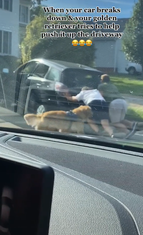 2020年10月10日一家人就要齊心協力~日前國外網友Kayla Wilson在TikTok上po出一段有趣的影片。當時她家兩位家人開車出門,沒想到車子出故障,只好下車用推的。兩人努力推車時,原本坐在車裡的金金也跳下來幫忙推車,牠的超貼心舉動讓人覺得很暖心。