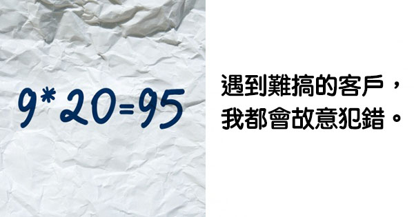 ▼11.「廣告公司的老闆教我,如果遇到奧客,先故意做錯一些小事讓對方糾正你~這樣他們就會自我感覺良好,接下來就不會再特別針對你了。」