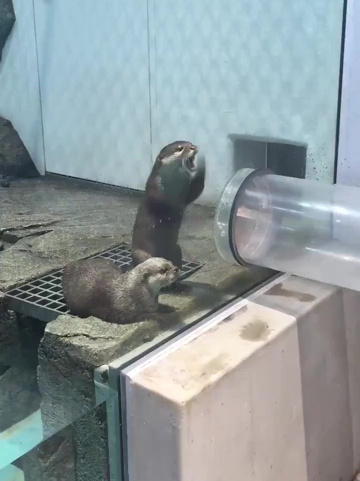 ニフレルの隣の水槽で飼育員さんが餌やってるのにめちゃくちゃキレてるカワウソ好きなんだよな... pic.twitter.com/HK73B8cV3O