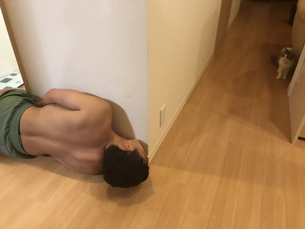 ▼那天推主走出房間,看到老公躺在走廊轉角的地上,只露出一雙眼睛,正以奇怪的方式跟貓咪玩「躲貓貓」。他玩得很認真、很投入,但從貓咪的角度來看,根本就是遇到了癡漢。