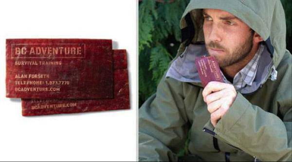 ▼野外求生訓練名片,關鍵時刻可以吃掉填飽肚子。