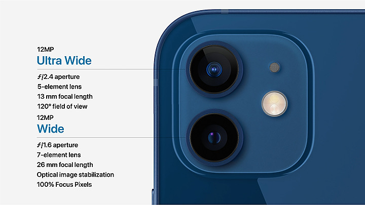 ▼iPhone 12相機為廣角+超廣角雙鏡頭,12 Pro系列則是配備有廣角、超廣角、長焦與LiDAR掃描儀的三鏡頭組合,相同的是相機光圈都有加大,有助於光源較低時的拍攝品質,並且全部增加到7枚鏡片,提升畫質銳利度。其中12 Pro Max還搭載「感光元件位移光學穩定」,類似單眼相機的機身防震功能,讓畫面穩定度如電影一般流暢。