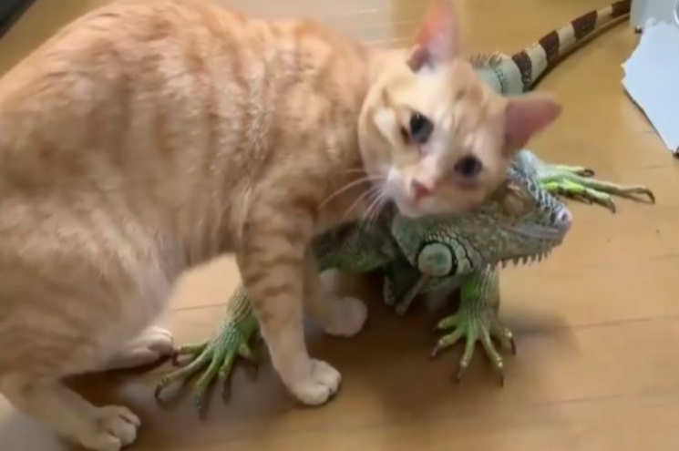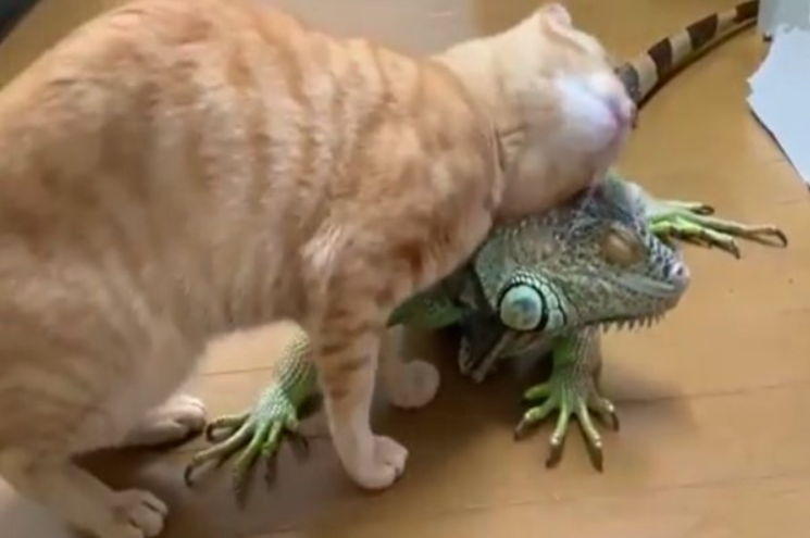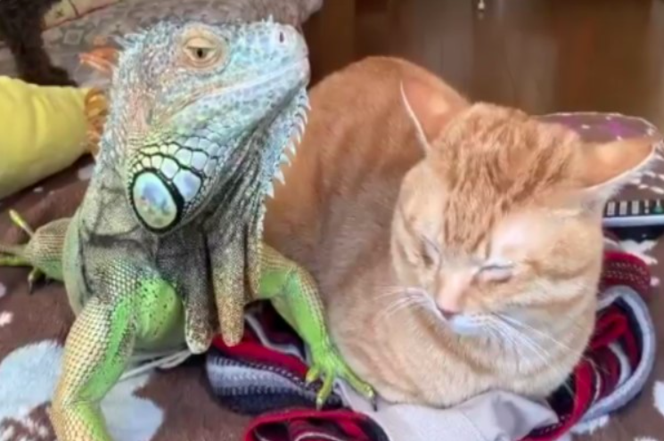 2020年10月16日貓咪很懂得享受生活,總是能找到讓自己最舒服的方式。日本推主@emichan_iguana非常喜歡動物,家裡有狗狗、貓咪、天竺鼠、鸚鵡、綠鬣蜥、陸龜和蛇等等。他非常博愛,不管什麼類型的動物都愛。其中3歲橘貓「Bokaja」(ぼうかじゃ)和7歲的綠鬣蜥「伊古學長」(イグ先輩)感情非常好。