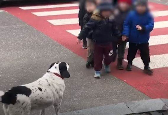 ▼每到當地小學的放學時間,Kupata都會準時出現在路邊,守護孩子們過馬路。路過學校區域時要減速、避讓,但很多車主根本沒有這樣的概念,明明看到有小學生過馬路,還是快速前進。看到這樣的司機,Kupata就會朝著車子吠叫,提醒車主開得慢一點。