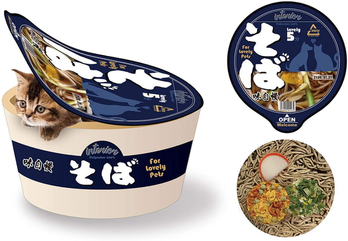 將自家的毛孩裝進杯麵裡,這個小窩的設計真是腦洞大開。貓咪、狗狗從杯麵小窩裡探出頭來的模樣太可愛,讓人心都要融化了。