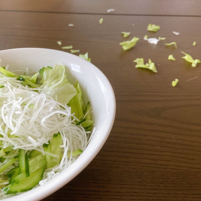 ▼日本一名推主@airi_____家裡就有一隻吃貨虎斑貓,有天@airi_____發現餐桌上的生菜沙拉被偷吃了,還有不少生菜碎屑散落在桌上。