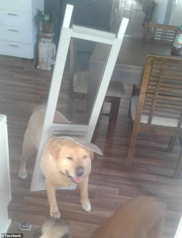 ▼Charmaine家中原本就有好幾隻狗狗,Drax被收編後很快就適應了新環境,跟其他狗狗成為了好朋友。牠每天跟同伴們進進出出,過得很愜意。但前幾天牠跟在同伴後面,準備穿過狗門時,前半身竟然被卡住了。