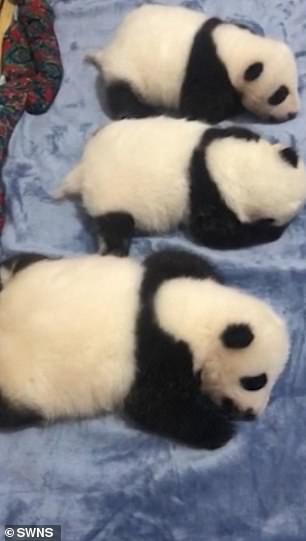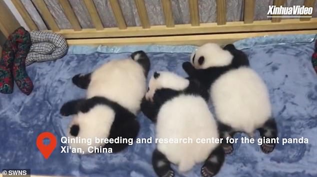2020年10月25日熊貓寶寶太可愛啦~最近秦嶺大熊貓研究中心po出一段影片,只見3隻可愛的熊貓寶寶排排躺,3個黑白毛團擠在一起,露出萌萌的腳掌,那畫面超療癒!影片中的3隻熊貓寶寶都是今年8月出生的,其中兩隻是雙胞胎姐妹,另一隻是牠們的好朋友。