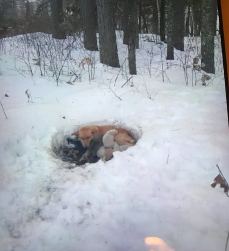 2020年10月25日動物有時候會表現出「人性」。在一個寒冷的冬天,美國明尼蘇達州發生了一件非常感人的事。在一片冰天雪地中,一隻狗媽媽在雪地上挖了一個洞,窩在裡面用體溫給6隻狗寶寶取暖。住在附近的一個家庭發現了牠們,連忙將牠們送到了當地的動物收容所。