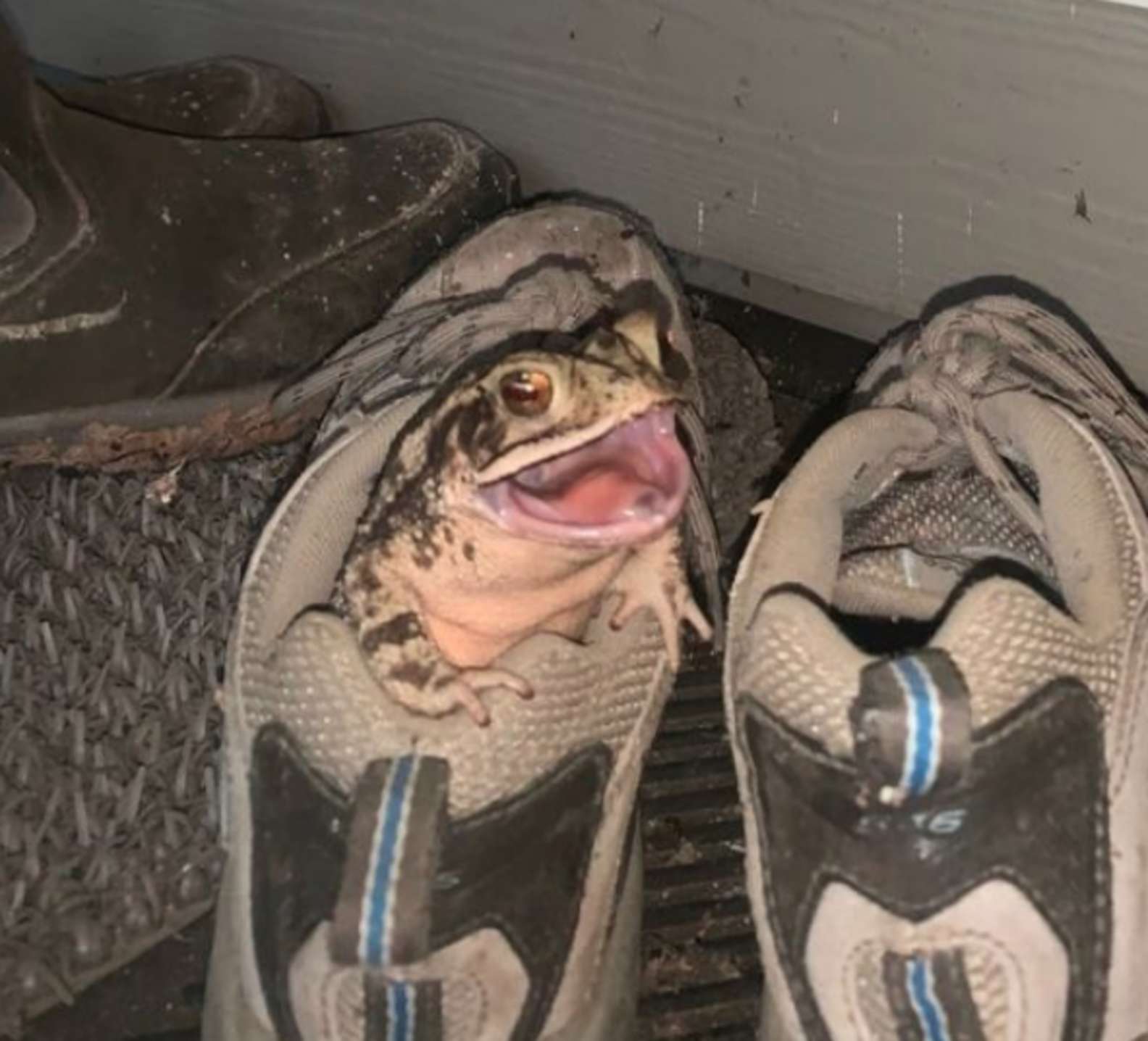 蟾蜍把球鞋當成「度假小屋」 搬進去「連住2年」她貼告示:噓...不要吵到牠!