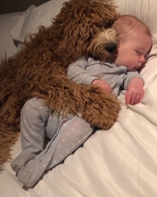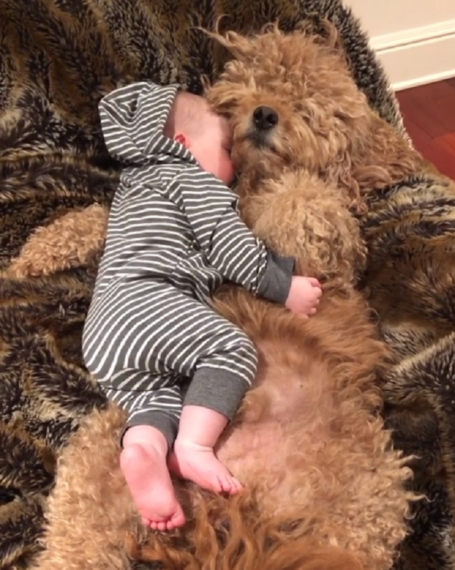 純天然泰迪! 萌寶寶每天被「3隻巨型貴賓輪流哄睡」超幸福:根本人生勝利組!