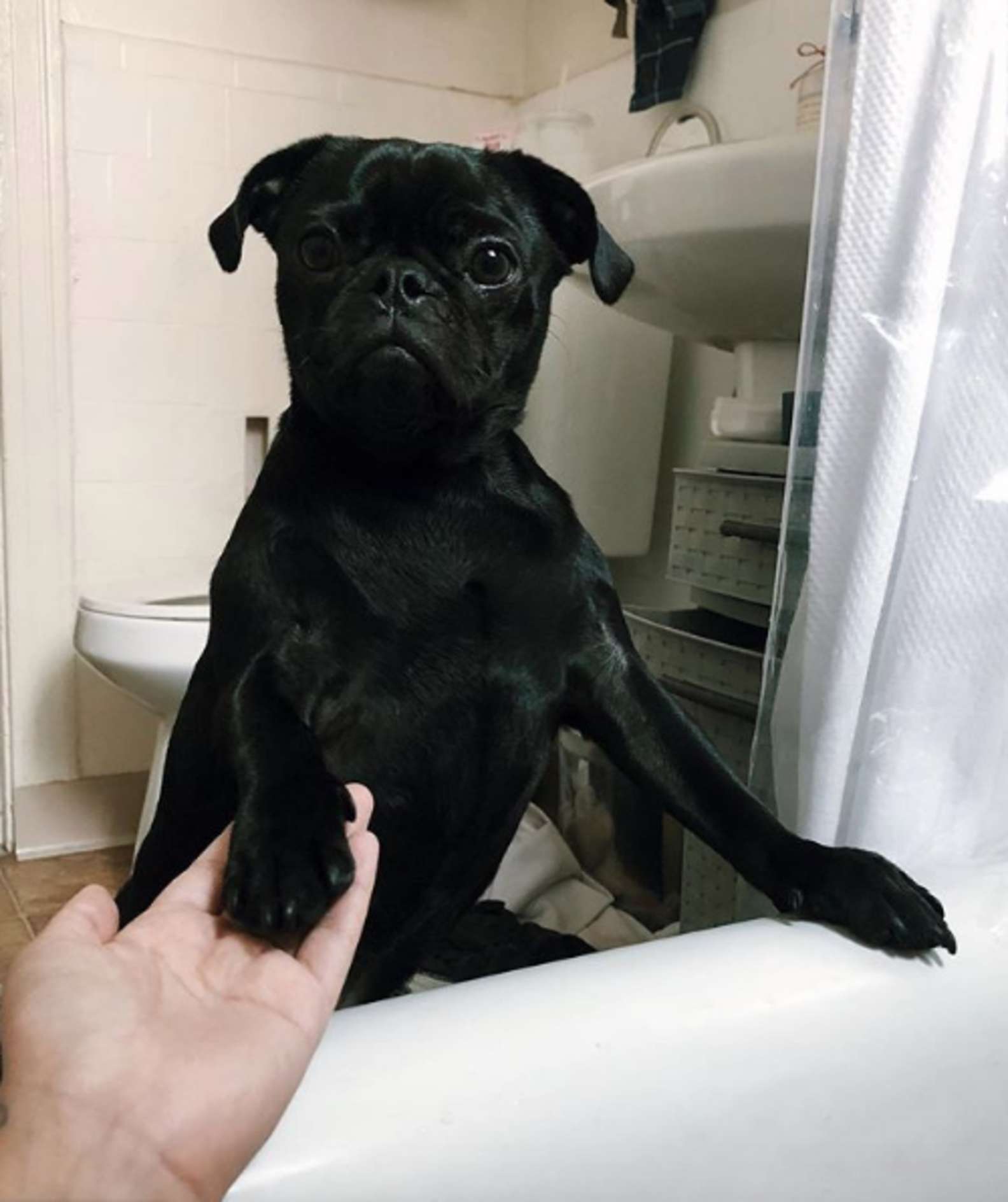 已融化♥ 萌黑汪自己「超討厭洗澡」 牠見主人泡澡「伸掌掌握媽」安慰:馬麻別怕,我陪你~