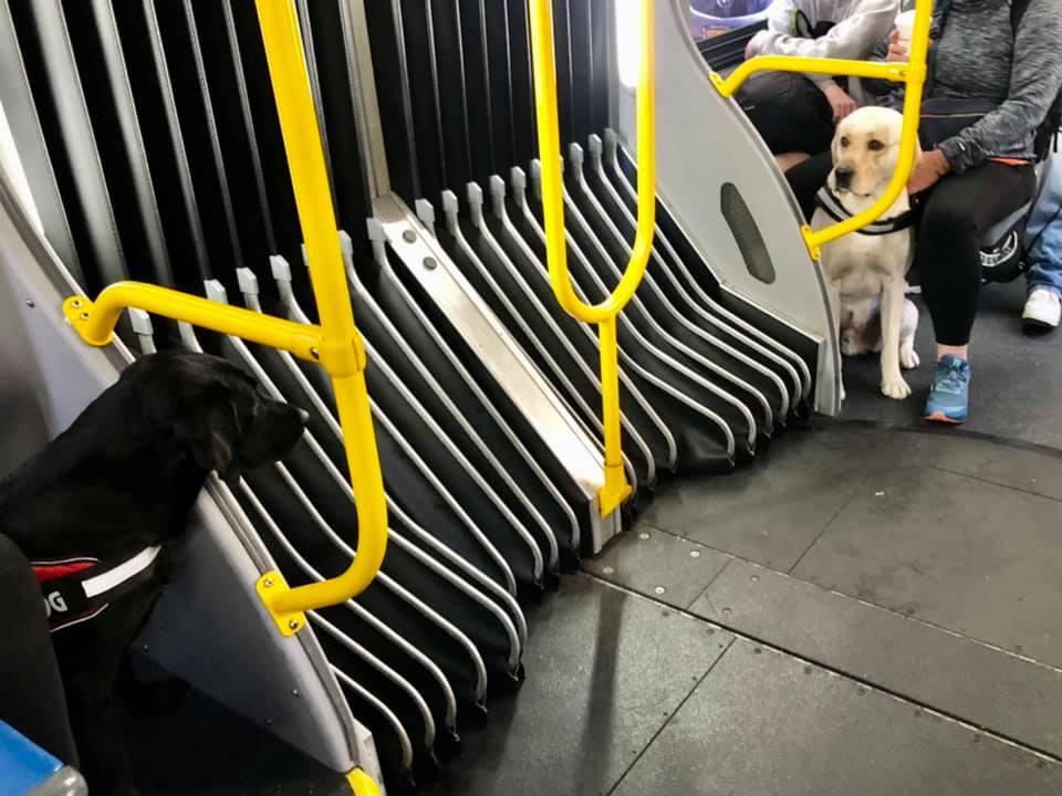 2020年10月28日公車上一見鍾情的浪漫情節可不只會發生在人類身上,在狗狗身上一樣可以上演!美國紐約的網友Robert Booz這天在公車上就看到了浪漫又可愛的一幕,一白一黑兩隻拉布拉多含情脈脈地隔空對望,然而現實讓牠們不得不離開彼此,最終這段愛情還是無果。