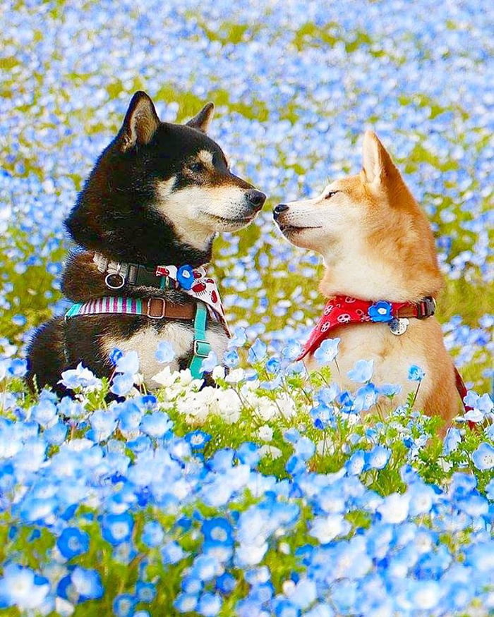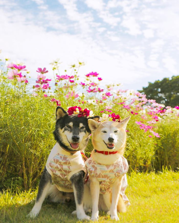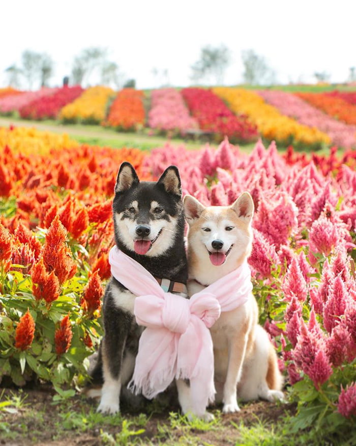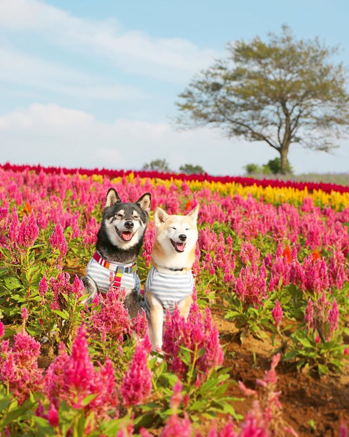 ▼主人Nerishiro經常帶兩隻柴柴外出旅行,為牠們拍攝旅行照片,紀錄柴柴兄妹的美好生活。Kenshiro和Yuria幸福依偎在花叢中,露出甜美笑容的模樣非常萌。