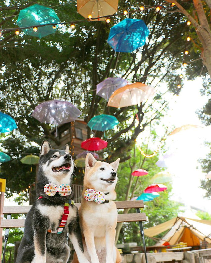 ▼柴柴兄妹笑容超可愛。美麗的風景加上牠們的笑容,療癒效果翻倍!