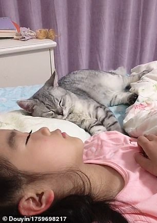 ▼爸媽介紹說,自從5個月前仔仔來到這個家,女兒就跟牠感情非常好。「我女兒一直想養貓,所以我朋友送給她這隻貓咪當禮物。貓咪會陪她寫功課,有時候他們還會一起睡覺。」