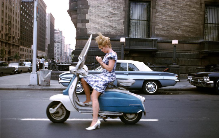▼1916年,這名婦人正在駕駛類似如今機車的移動器。