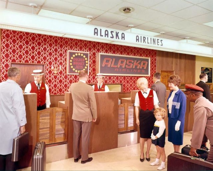 ▼1960年代,準備登機和托運行李時的櫃檯。