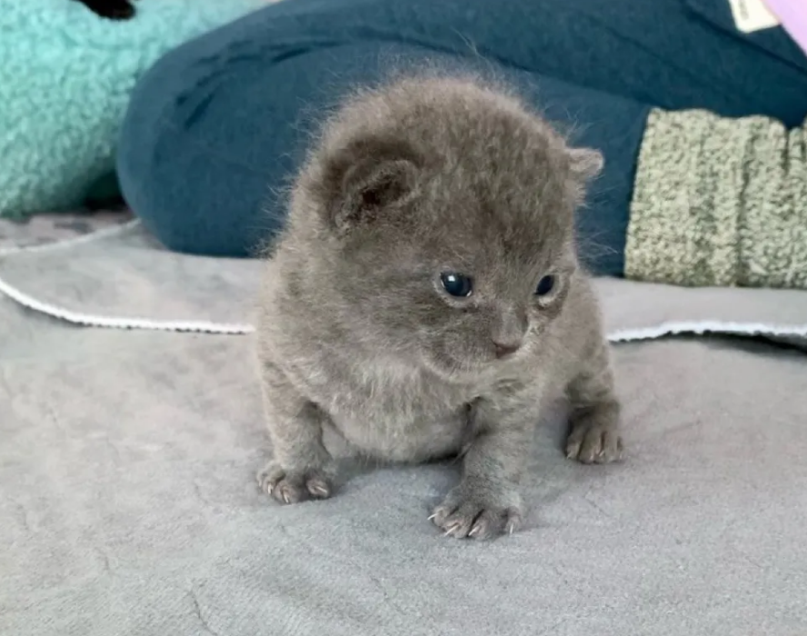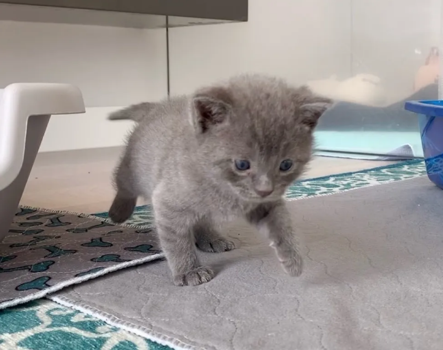 ▼一天傑茜和往常一樣到收容所去領養流浪小貓,她原本已經選定了要領養的3隻貓咪,但是當她看到這只明顯比其他貓咪瘦弱很多的小灰貓寶寶弗蘭克(Frankie)時,牠眼中充滿了想要一個家的渴望,像是在說「不要丟下我,拜託~」,傑茜瞬間被融化了,於是將另外3隻貓咪和牠都一併帶回家。