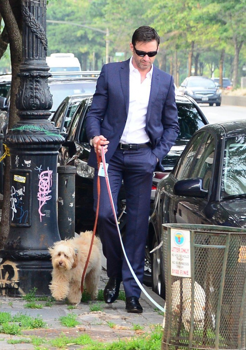 不愧是男神! 休傑克曼「連遛狗也帥」氣場超強 整個城市都是伸展台:時尚巨星走秀