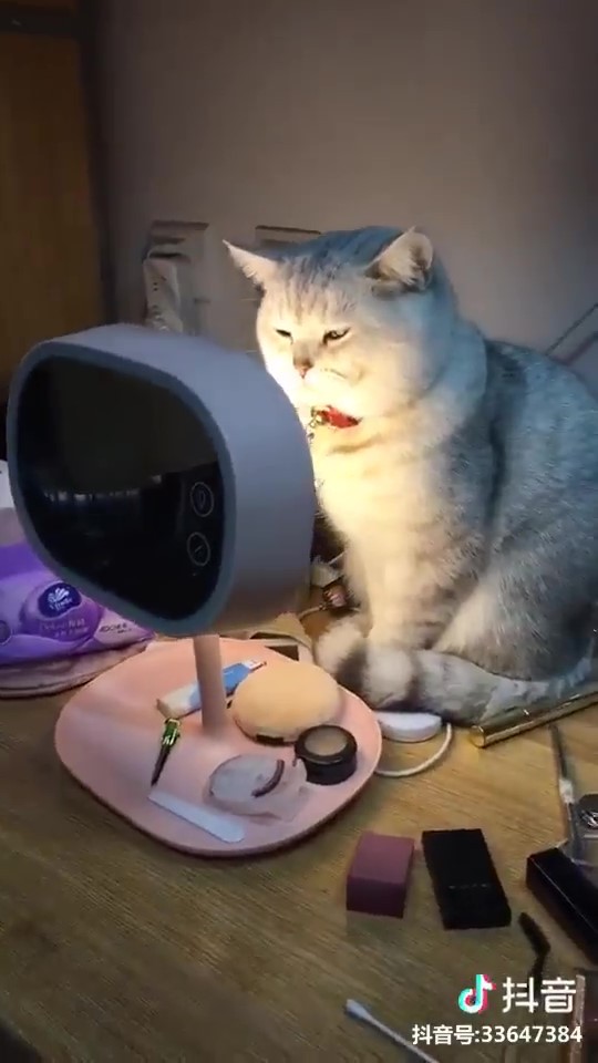 ▼這天飼主在化妝的時候,由於光線有些暗,就開啟了化妝鏡上的燈光,沒想到家裡的貓咪很快湊了過來,之後還杵在燈光前一動不動,主人一看立刻明白了,原來貓咪誤以為化妝鏡的燈光是暖爐,正在取暖呢,主人頓時覺得無奈又好笑「可是這不是暖爐欸…」。