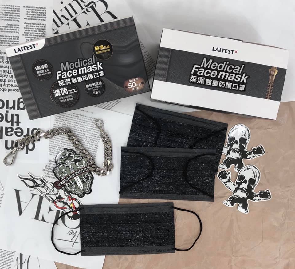 ▼快看看這讓人無法抗拒的帥氣花紋,萊潔首創黑牛仔紋口罩設計,主要發想來自美國重機文化,選用亮光黑搭配刷白牛仔紋,整體設計元素充滿低調奢華的暗黑潮流感。