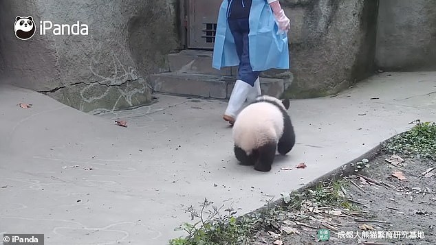 我不許你走!黏人熊貓寶寶「緊追飼育員」 最後見關門還「失落綜藝摔」