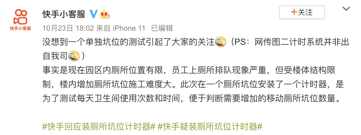 ▼有些網友看到公司的解釋後表示理解,也有一些網友稱:「當人傻的嗎,統計數據根本不用這麼大張旗鼓的計時」、「怎麼不裝指紋鎖呢,紀錄得更詳細」、「建議不要讓員工吃飯喝水,這樣就不用上廁所了」。