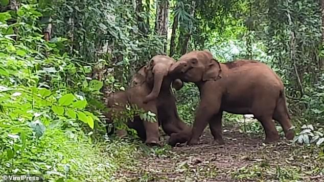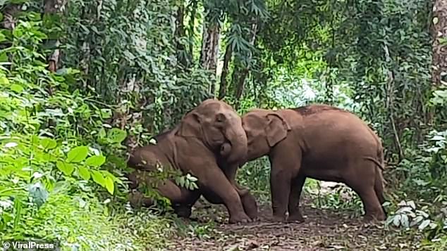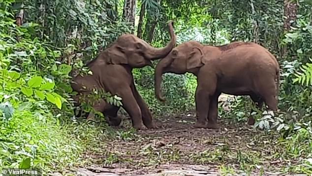 2020年11月05日大象一直給人穩重、溫和的印象,但最近泰國北碧府國家公園中的2隻小象卻展現出了不尋常的活潑一面。牠們用象鼻纏繞對方、不停推擠,看起來似乎是在玩鬧,但都沒有太用力。原來這是一種遊戲,也是友好的表現。