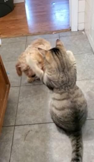 2020年11月07日毛孩之間的互動太可愛啦~國外一位網友養了3隻毛孩,分別是7歲的貓咪Marvin、4個月大的小狗Louie,還有1歲的大狗狗Leela。平時Marvin在家中作威作福,尤其喜歡欺負Louie。但Louie不會忍氣吞聲,牠知道該找誰幫忙!