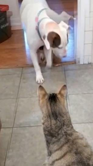 原來Marvin是一隻欺軟怕硬的貓咪!面對小狗,牠重拳出擊;面對大狗,牠立刻逃跑。沒想到動物的世界有這麼多趣事,戲未免太多啦~