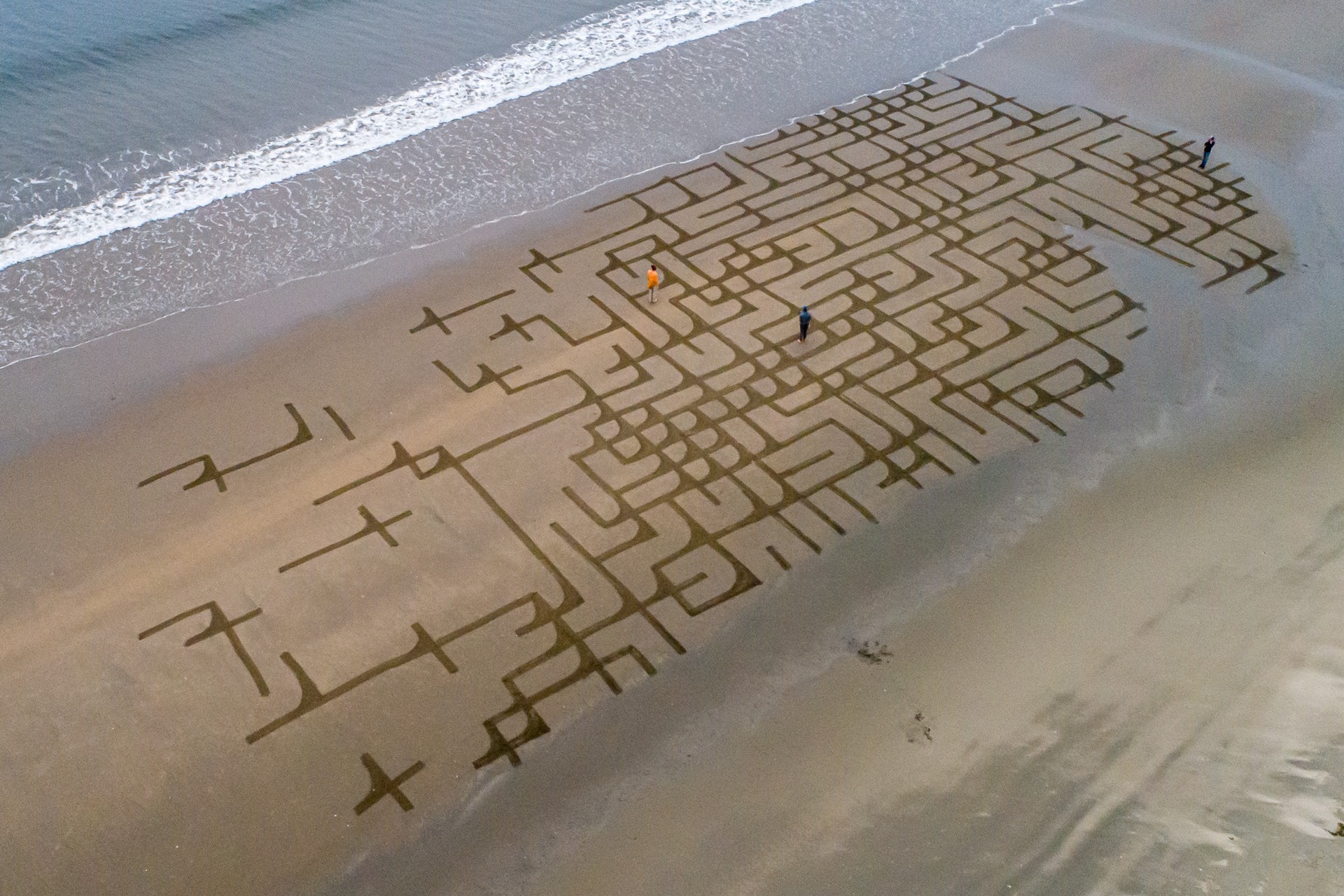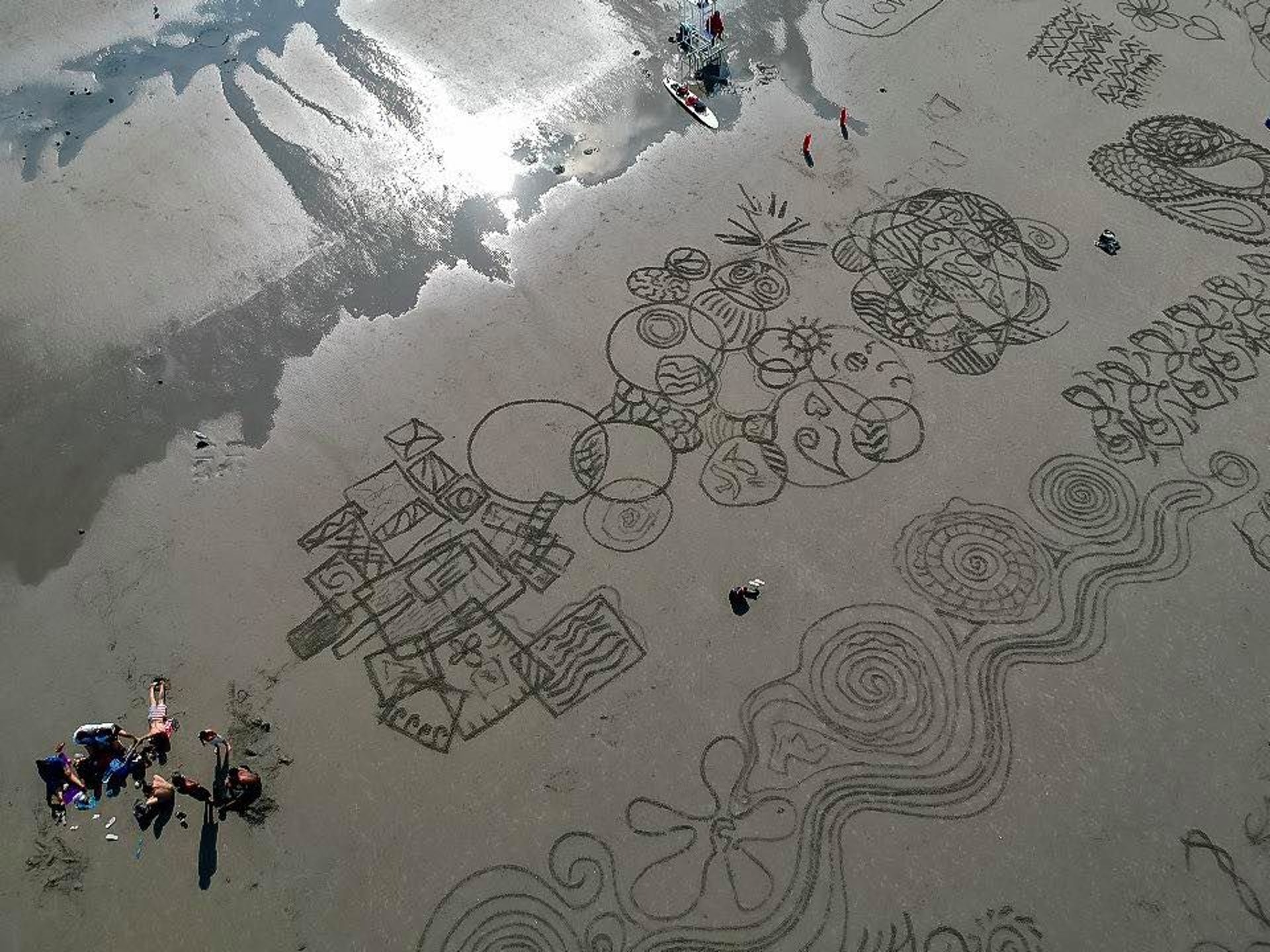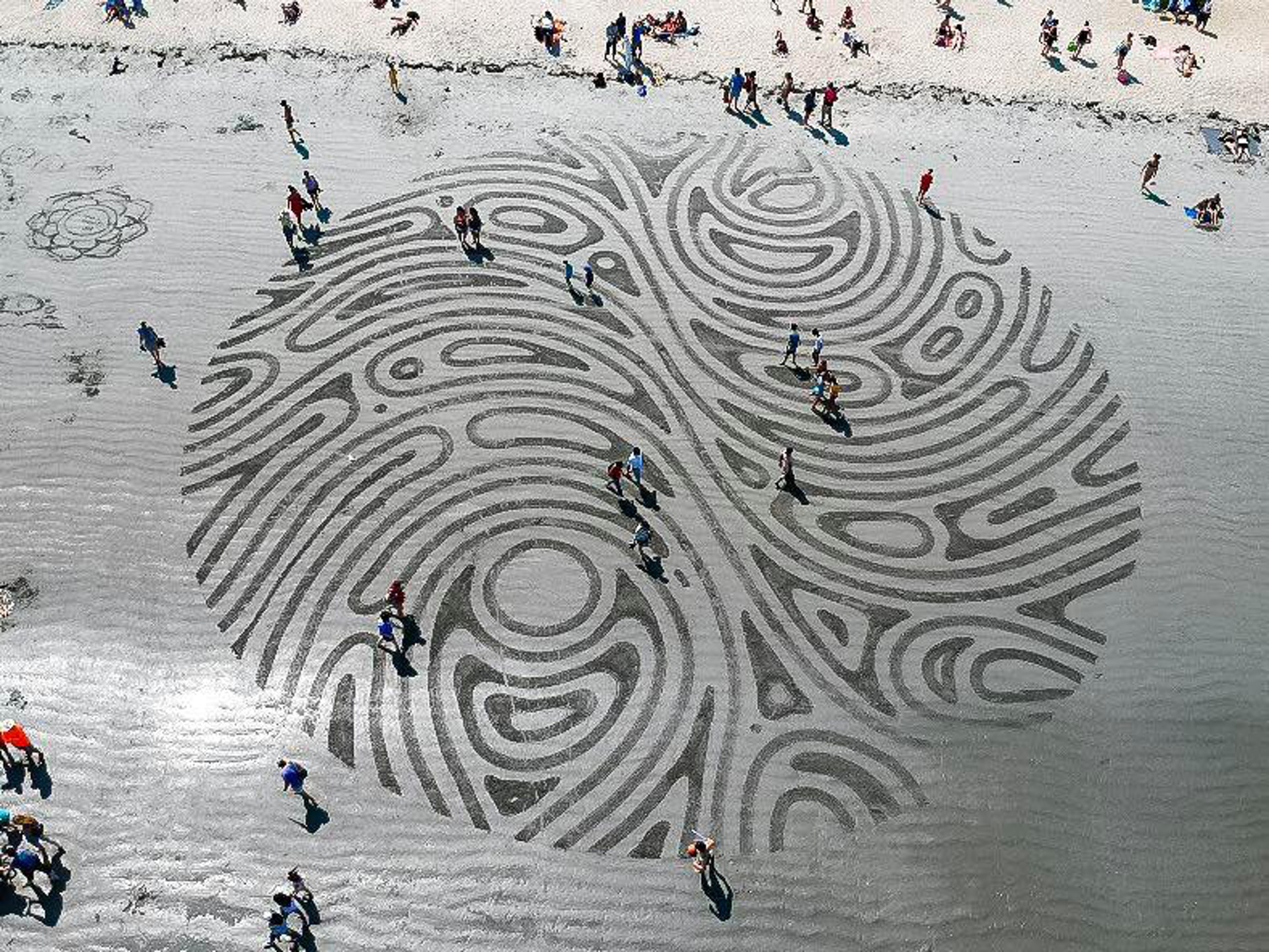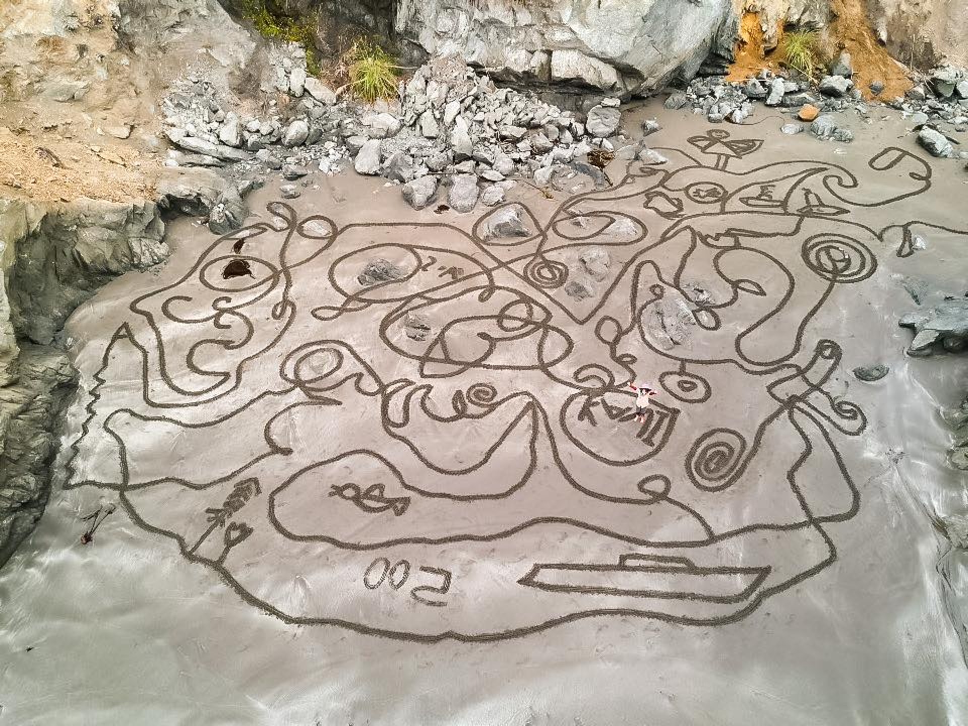 沙灘驚現「萬尺巨型圖騰」 地景藝術家「融入自然」變畫作:潮汐會幫我清洗畫布