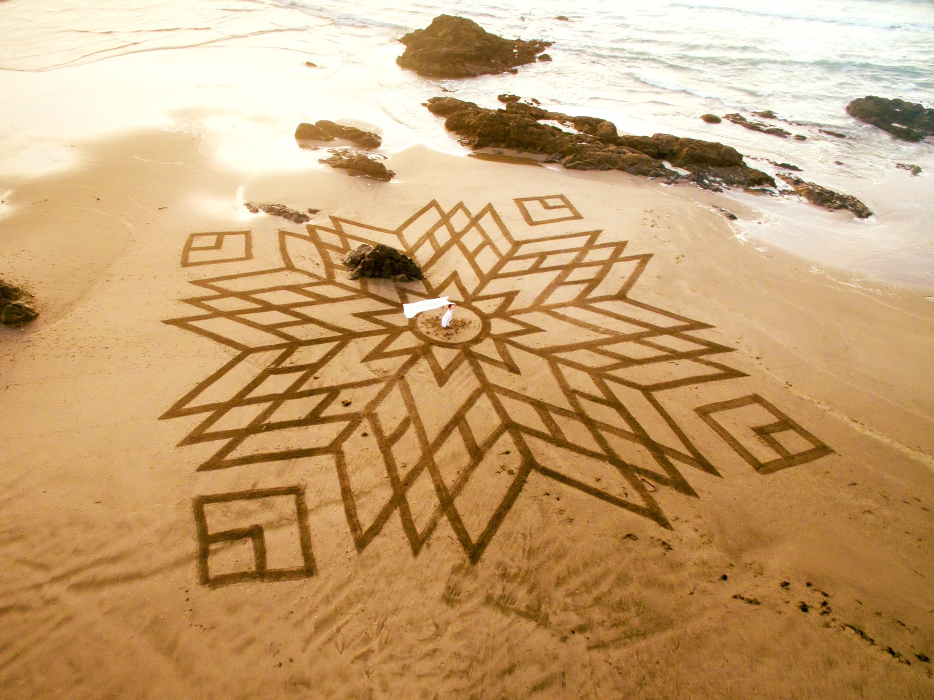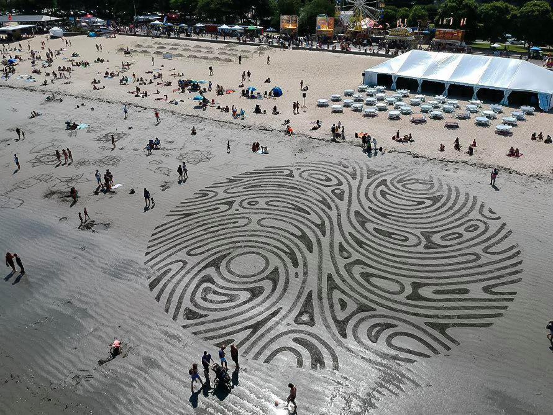 ▼Andres Amador最大的作品足足有10萬英尺!沙灘上的圖案以增長原理進行擴展,變成一個個獨特的實體。他說:「我的作品中沒有兩幅是完全相同的,每一幅創作的步驟都是獨一無二的。設計靈感來自不同方面,有大自然、人為景觀、文化設計等等。有時我會從泥土的裂縫間展開創作,也會用自己開發的技術來創作巨型作品,在探索的同時出現靈感,創作新的作品。」