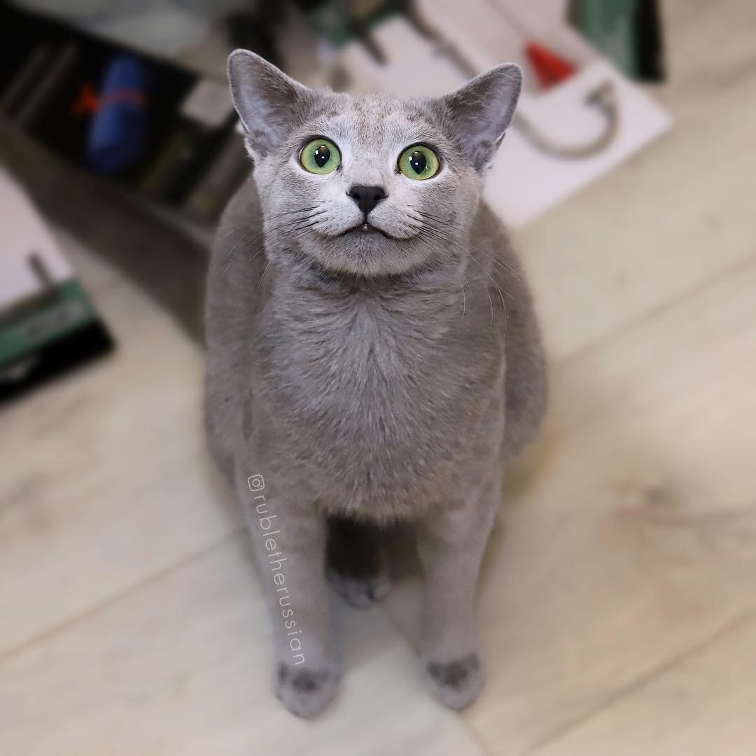 2021年04月17日我們一般對於喵星人的印象,都是比較高冷、驕傲的姿態,時不時還會發狠瞪人,瞪到你心裡發寒。但是在美國加州,就有著這麼一隻名叫「Ruble」的俄羅斯藍貓。人稱「微笑小紳士」的牠,天生自帶上揚嘴角,對於各種撩妹表情,那更是無師自通、信手拈來,收買鏟屎官的心完全駕輕就熟,微微一笑就能迷倒眾生啊!