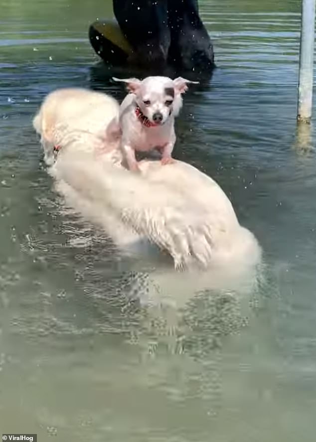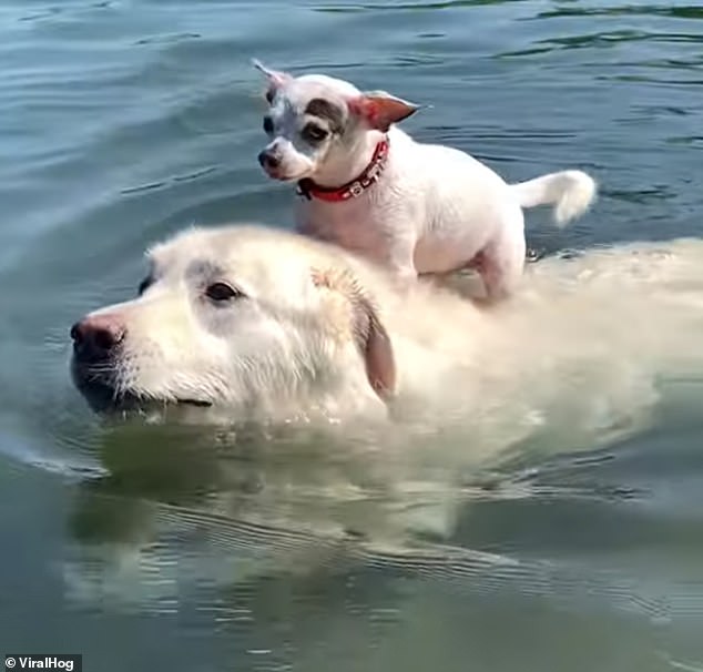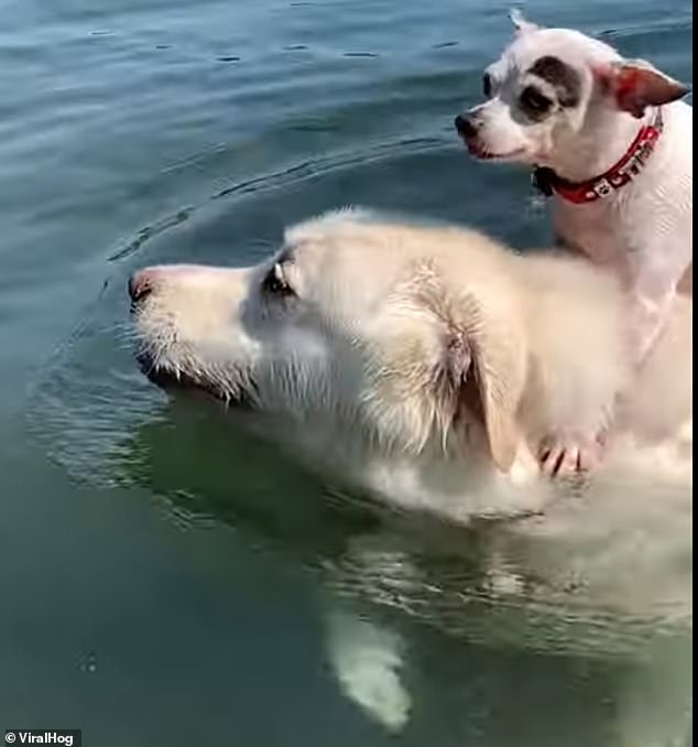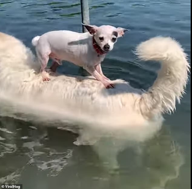 2020年11月10日什麼是真正的朋友?看看吉娃娃Tim和大白熊犬Ben的相處方式就知道了~Tim不會游泳,但牠很喜歡在水面上看風景。Ben是一位游泳高手,牠心甘情願充當Tim的「小船」,載著牠在水面上遊蕩。