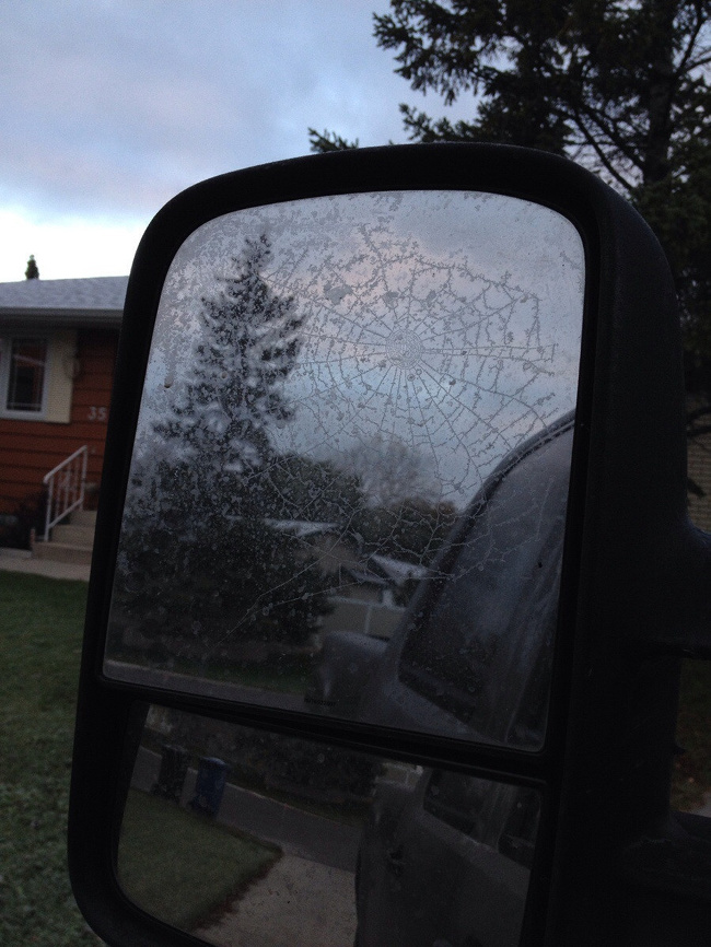 ▼連蜘蛛網都結冰了。