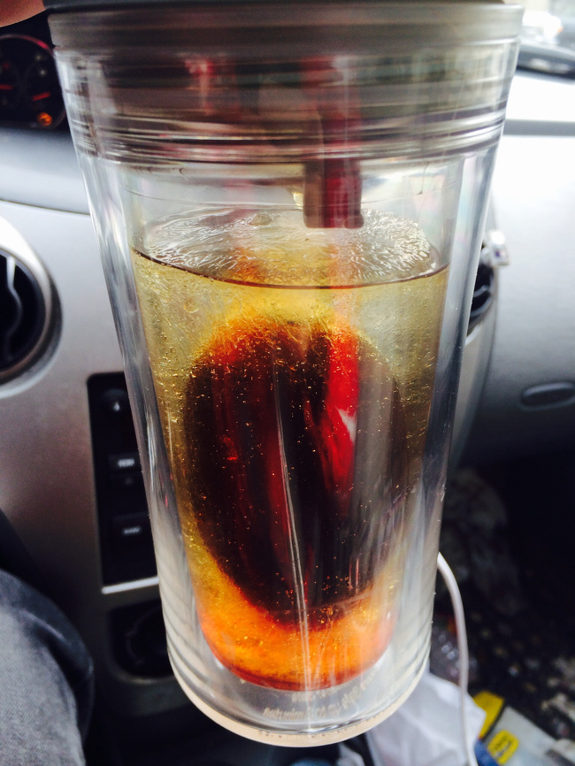 ▼「我把杯子留在了車裡,忘記帶回家。第二天早上裡面的茶凍住了。」