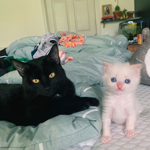 ▼在Jennifer和男友的悉心照顧下,Hank日漸強壯,如今的牠不僅很健康,還長成了一隻超頑皮的「小野貓」!每天都精神百倍的模樣,偶爾還會故意去招惹貓咪姐姐Poppy和哈士奇哥哥。