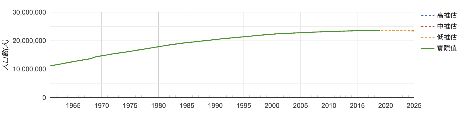 ▼大約從1990年代起,台灣的人口就已經超過兩千萬大關,雖然每年總人口數仍持續增加,但是生育率下滑的速度太快,人口增加的速度也開始趨緩。台灣在2009年開始鼓勵生育、推廣生育,不過為時已晚,生育率不斷跌落。