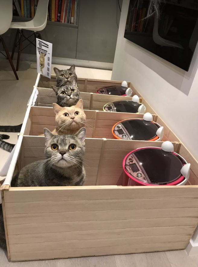 一貓一間不用搶! 天才主子蓋「一蘭喵麵館」讓牠們排排坐吃飯