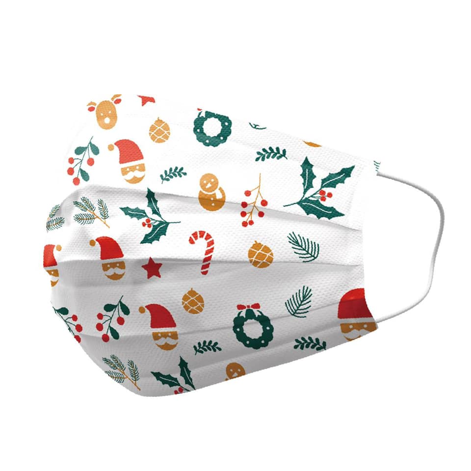 ▼這系列口罩成人款、小孩款都有,印上聖誕老人、麋鹿、聖誕樹、聖誕襪、禮物跟拐杖糖等超童心的應景圖騰,連口罩外盒都是戴上聖誕帽+聖誕配色,那欸架勾錐!