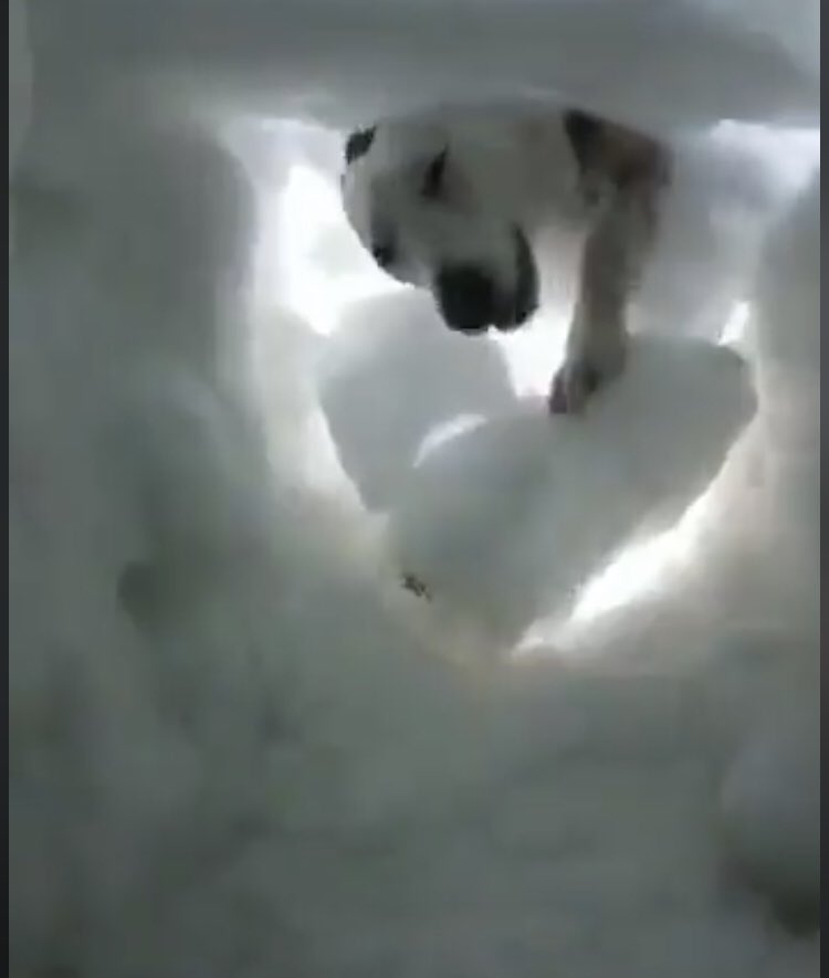 「雪地受困者視角」看狗狗救援 牠猛鑽進去送暖:我來救你了