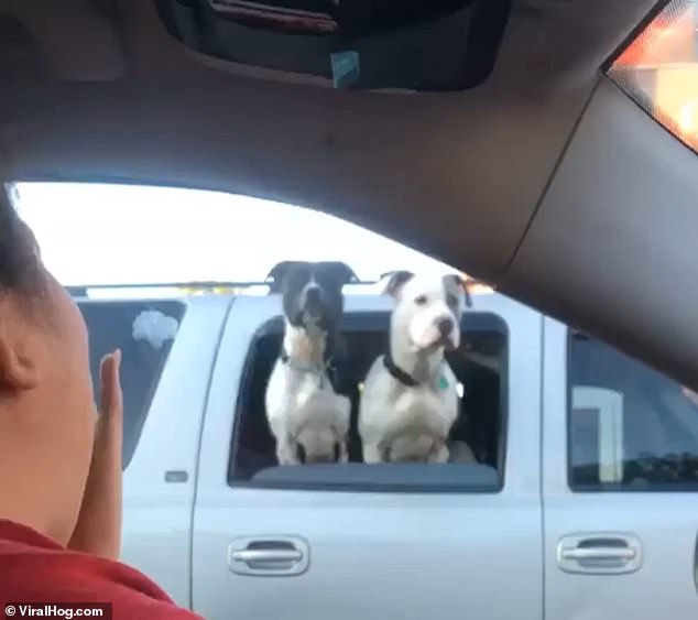 ▼原po表示:「我和最好的朋友在市區的一路等紅燈時,看到好幾隻狗狗從隔壁車輛的車窗探出頭。我開始拍攝時,第3隻狗狗恰好出現。我沒想到這段影片會那麼受歡迎!」
