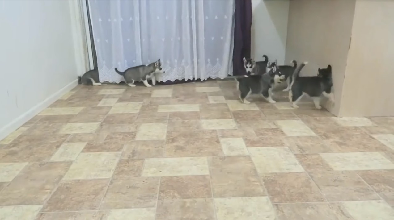 ▼當家長離開以後,這群小哈士奇也玩開來了,看來這位主人真的需要很有耐心才能飼養那麼多活力充沛的哈士奇寶寶!