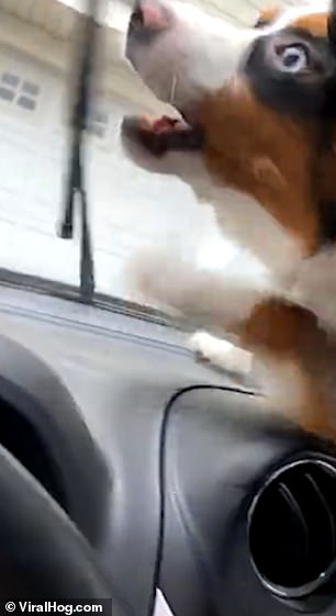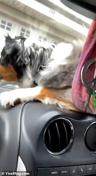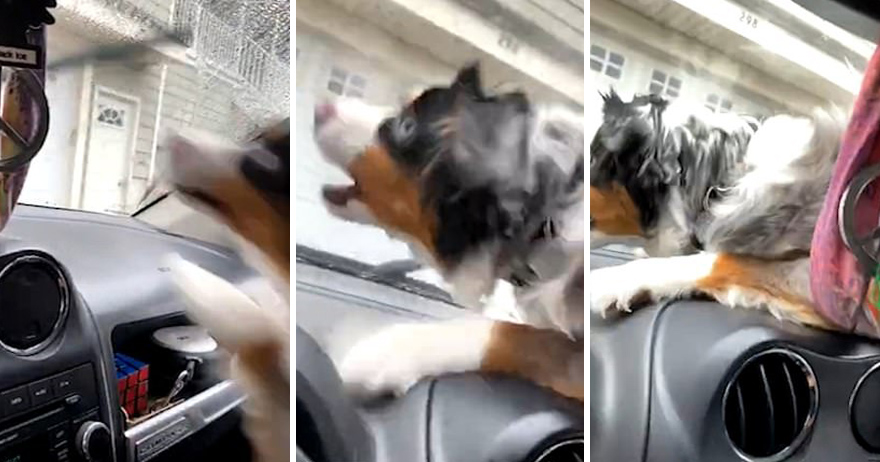 2020年11月16日很多狗狗看到汽車上擺動的雨刷,都會心生好奇。美國新罕布夏州塞勒姆(Salem)的一名網友養了一隻可愛的澳洲牧羊犬,這隻狗狗很不喜歡雨刷,每次看到雨刷擺動,都恨不得能撲上去咬下來。那天狗狗待在車中,看到擋風玻璃外的雨刷擺動,竟然猛地撲到儀表板上,對著雨刷又吼又叫。