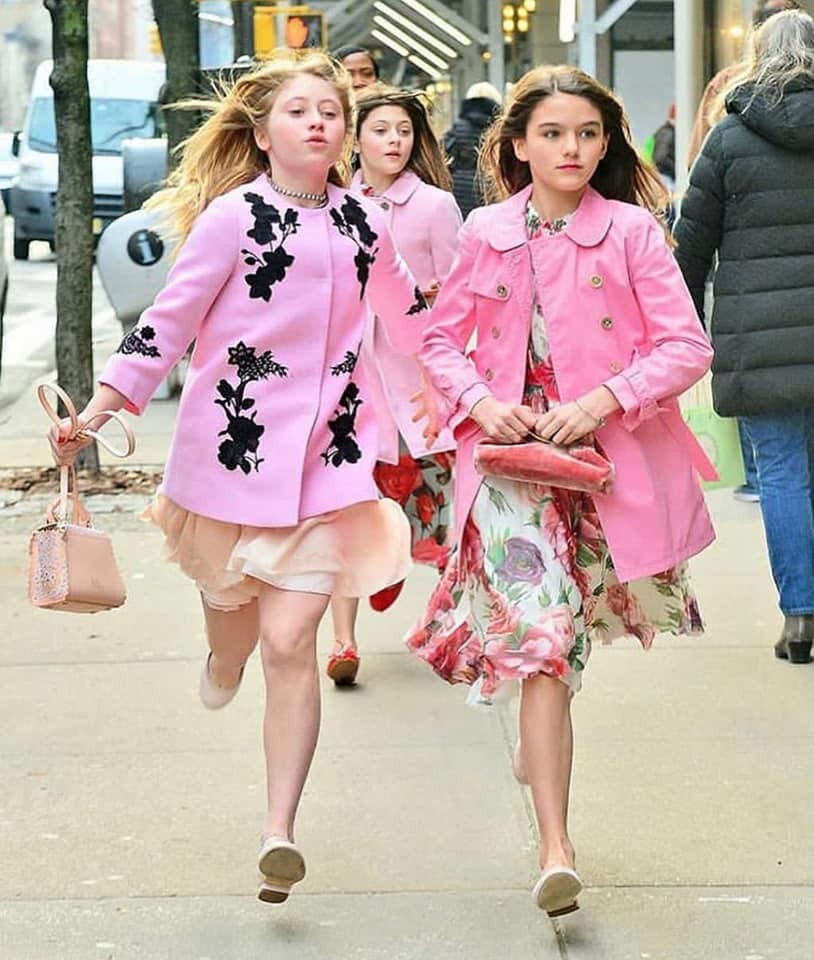 ▼最近蘇莉再一次登上版面,這次她出現在公眾面前,已經是一位14歲的少女了。媒體拍到她和朋友在紐約街頭奔跑的畫面,只見蘇莉五官依舊精緻,只是褪去嬰兒肥,看起來成熟很多。她穿著粉色的上衣、印花裙子,一頭飄逸的長髮非常美,看起來很有明星的架式。