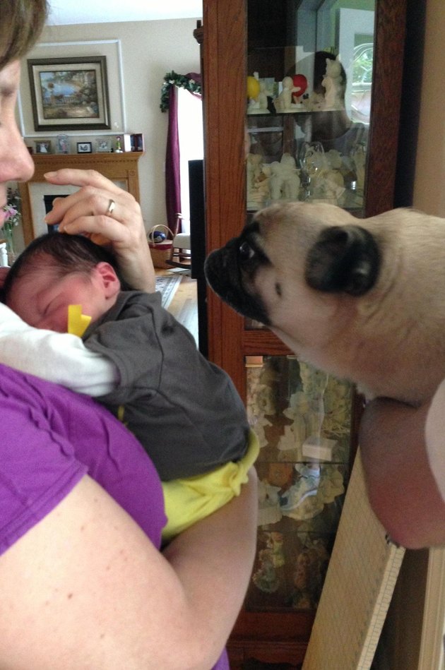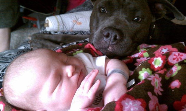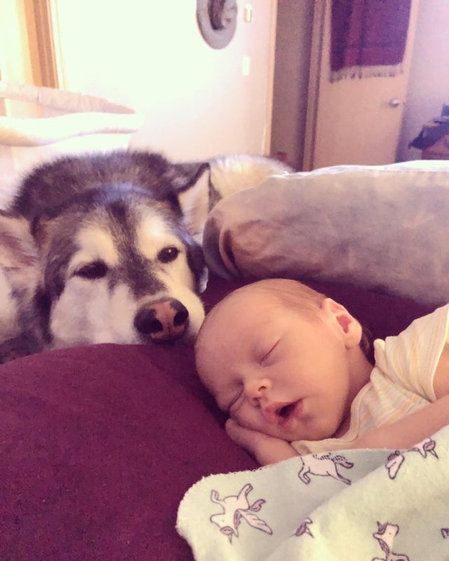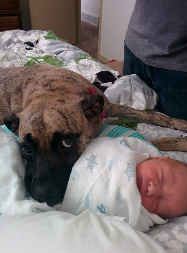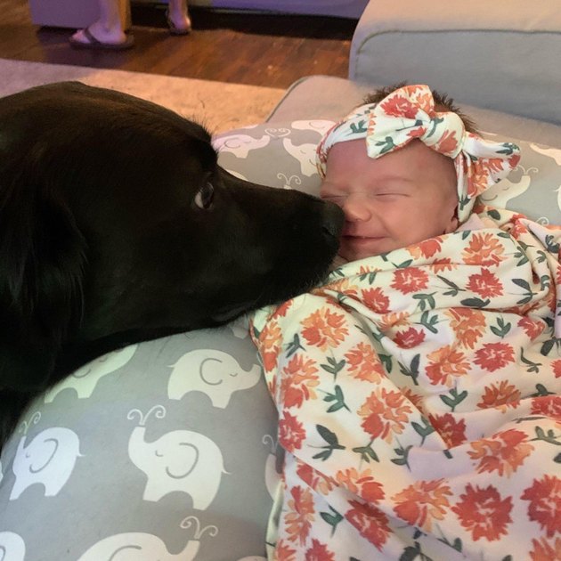 ▼家裡有一隻大狗狗的話,根本不需要嬰兒床。