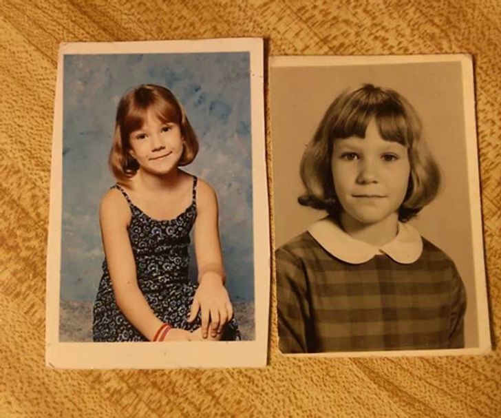 ▼媽媽和女兒同樣的年齡拍攝的照片。